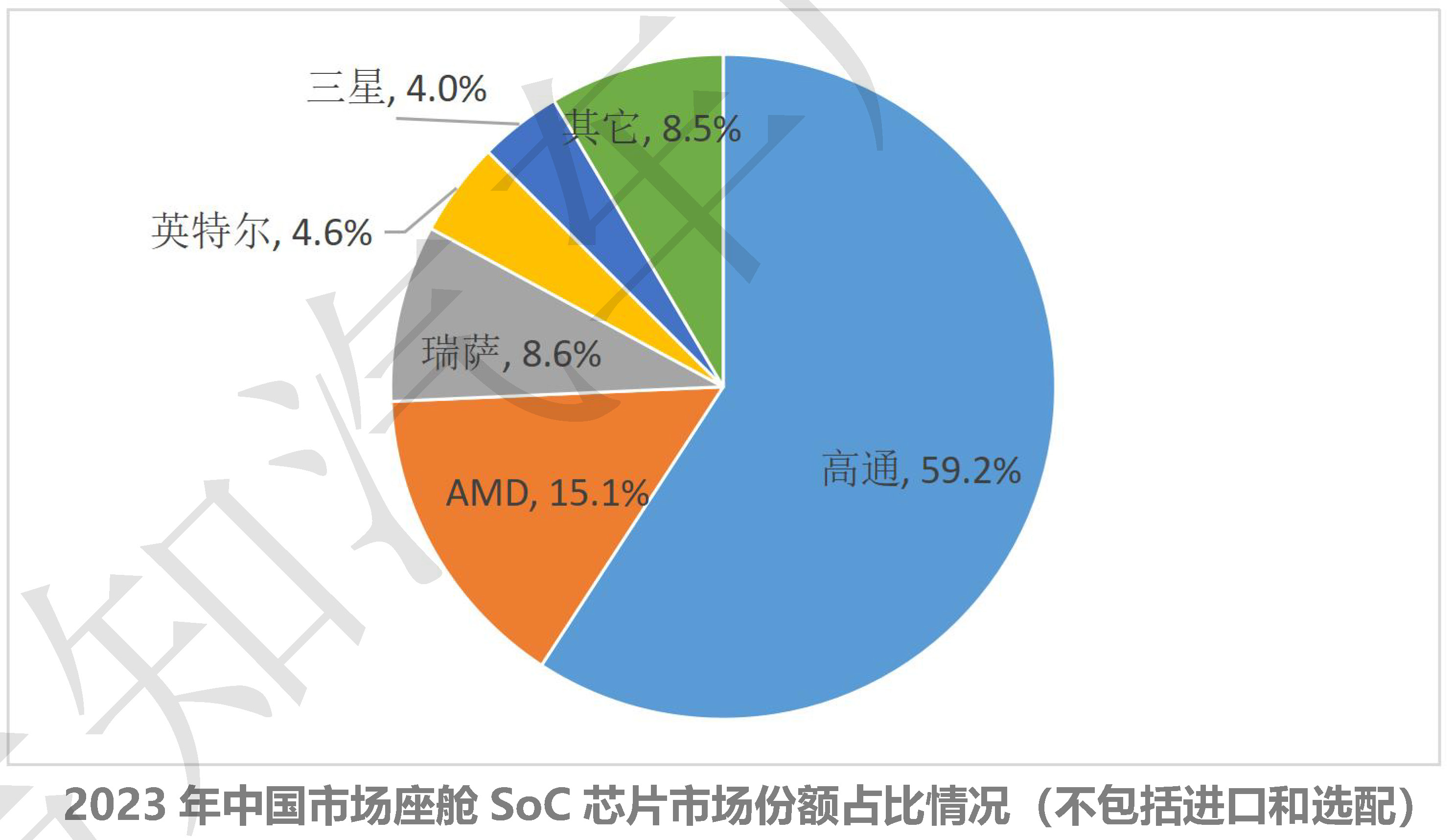 當(dāng)前,智能座艙SoC市場競爭格局呈現(xiàn)出高度集中的態(tài)勢,主要由幾家國際知名的半導(dǎo)體制造商主導(dǎo),包括高通、AMD、瑞薩電子、英特爾及三星等,這五大廠商共同占據(jù)了超過90%的市場份額。從細(xì)分領(lǐng)域來看,在座艙域控制器主控SoC方面,低端至中端市場主要由傳統(tǒng)汽車半導(dǎo)體供應(yīng)商如Renesas、TI、NXP等占據(jù);而在高端市場上,則是消費(fèi)類電子產(chǎn)品領(lǐng)域的領(lǐng)軍者如高通、三星、英特爾以及AMD等發(fā)揮著重要作用。