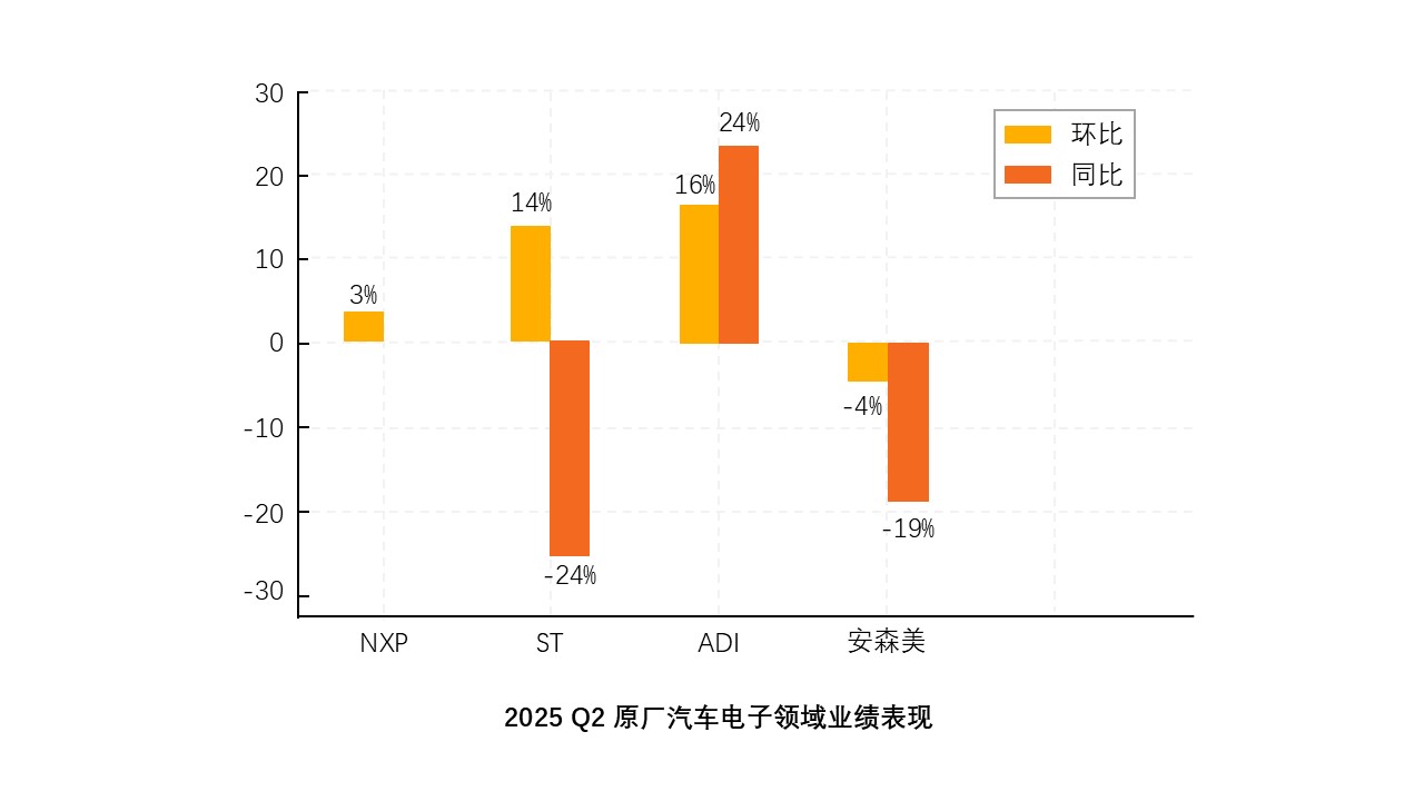 ADI:Q2汽車營收同比增長24%,環(huán)比增長16%,訂單的增長主要受關(guān)稅調(diào)整前需求提前采購。其在中國汽車市場增長明顯,預計下半年汽車SAR需求將走弱。